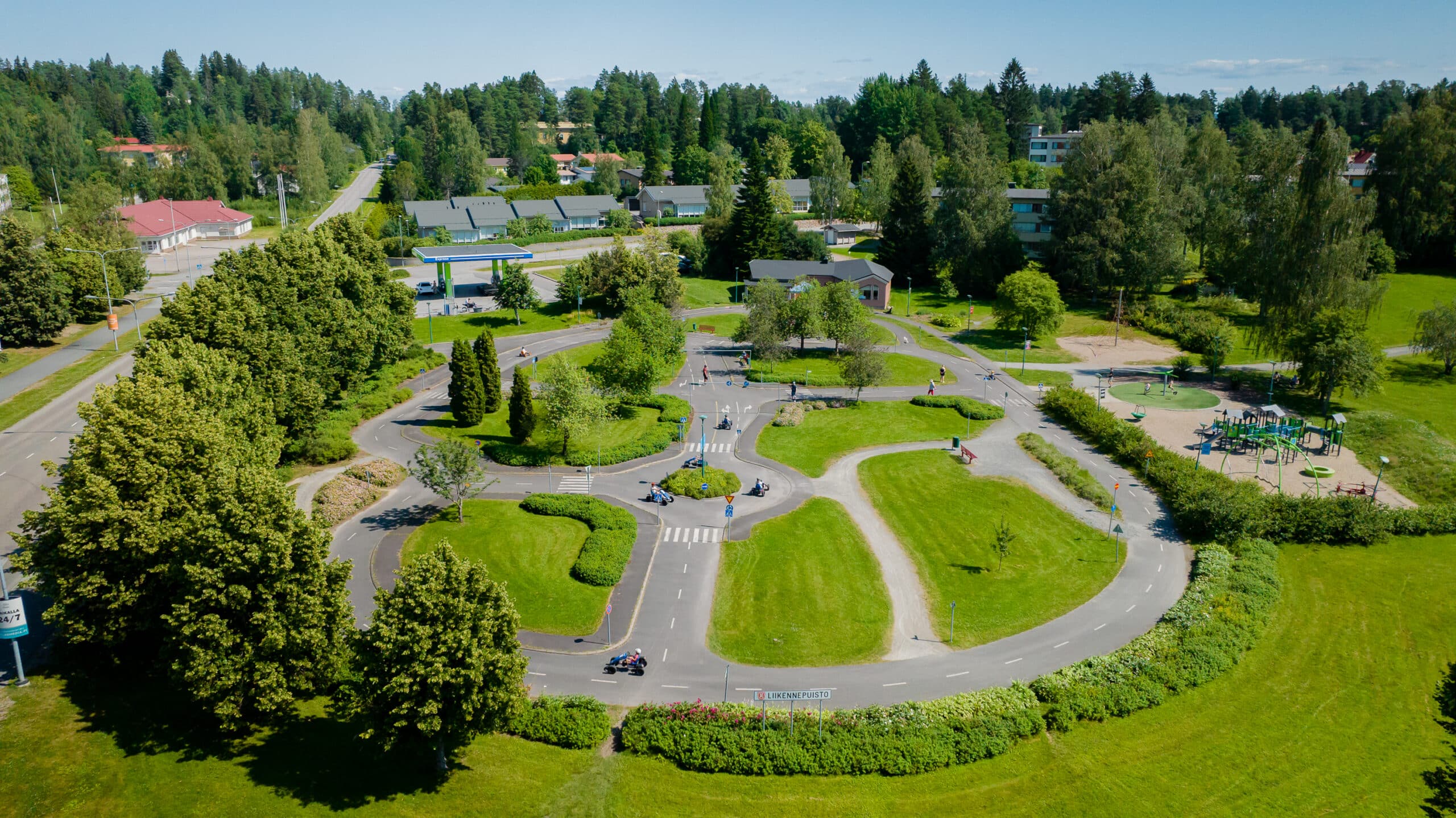 Liikennepuistossa lapset voivat harjoitella liikennesääntöjä polkuautoilla, kolmipyörillä ja työntöautoilla. Puistosta löytyy liikennevalot, liikenneympyrä ja tankkausasema, ja perheen pienimmät viihtyvät leikkikentällä. Kahvio tarjoaa virvokkeita, ja teemapäivät tuovat puistoon lisää hauskaa ohjelmaa.