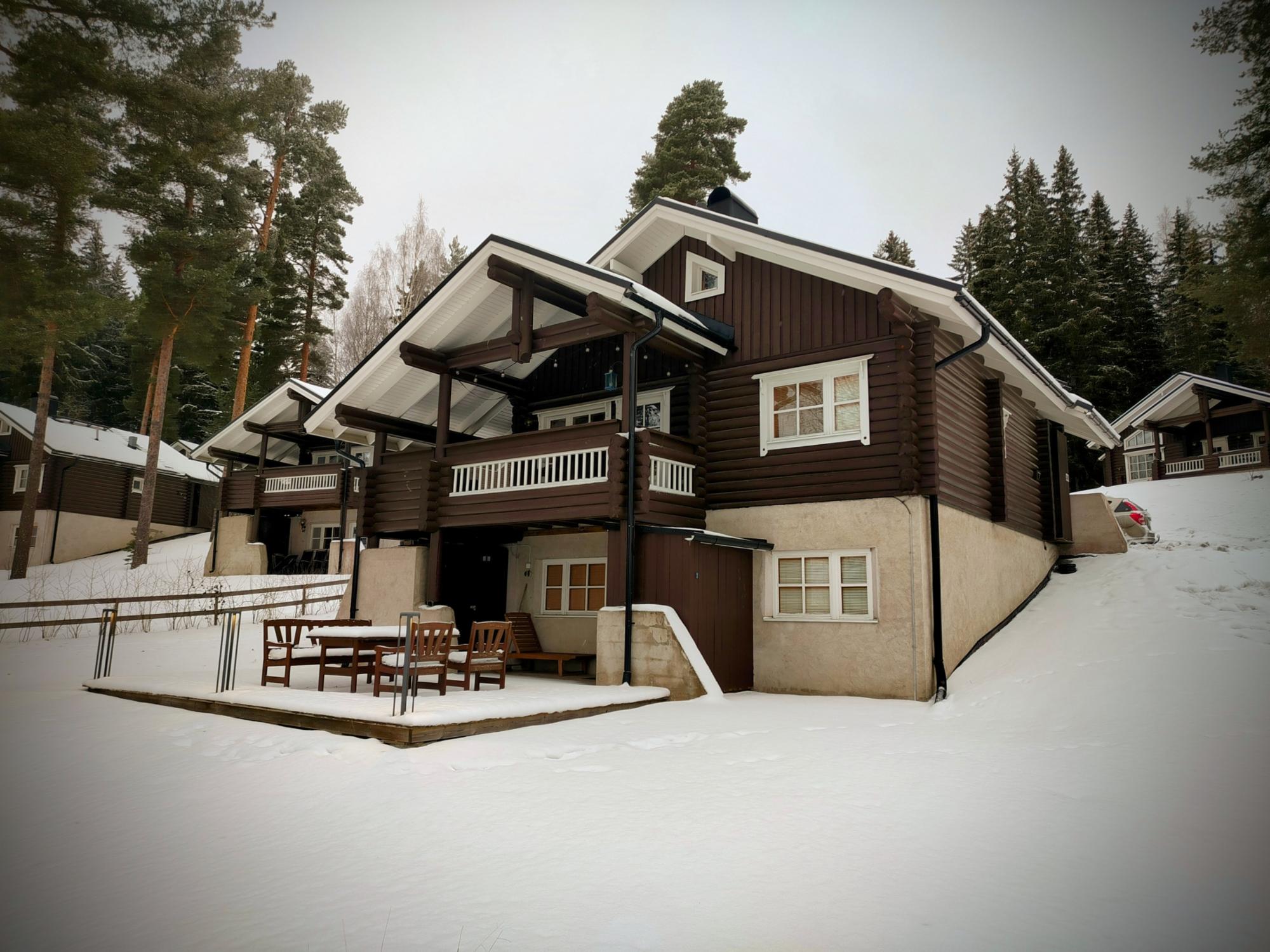 A cozy and modern semi-detached cottage in Himoslaakso, located at the base of the West Slopes and right next to the golf course’s first tee and local services. Himos Areena is only about 600 meters away, making it easy to walk to events and activities. The cottage is an excellent choice for a family or a group of friends, and larger groups can book both apartments of the semi-detached house.