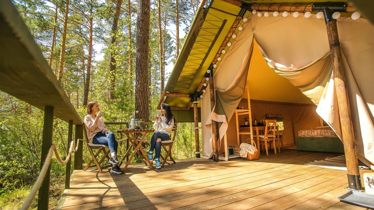 Glamour ja camping ovat yhtä kuin glamping eli luksustelttailu. Glamping on suosittu retkeilyn muoto niille, jotka eivät ole kiinnostuneita perinteisestä telttailusta metsän keskellä. Luksusteltassa nautit kaikista mukavuuksista luonnon helmassa.