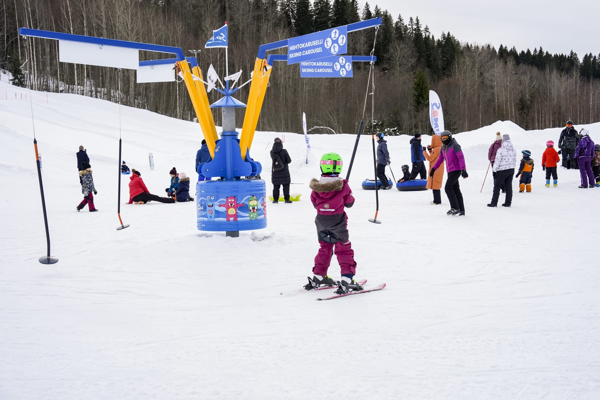 Pääsymaksuun sisältyy Lumilan pulkkien, rattikelkkojen, liukumattojen ja tuubien vapaa käyttö.