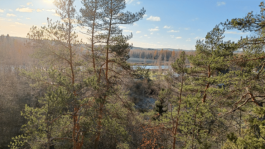 Askeleet johdattavat tutulle näköalapaikalle Rotkovuorelle. Syksyisen pirteä, aurinkoinen sää ja kevyen vilpoisa tuuli heiluttaa vanhojen mäntyjen oksia. Istahdan kelon rungolle ja jään katselemaan vastapäisen Konivuoren hakattuja rinteitä.