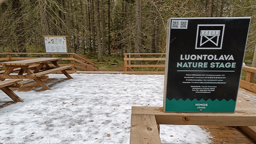 Matka on kuitenkin tekemisen arvoinen, sillä luontomatkailuhankkeen puitteissa viimeinen 400 metriä on sorastettu niin, että perille pääsee myös liikuntarajoitteinen. Tämän jälkeen kuljetaan loppumatka komean portin alta rotin rajalle asti rakennettua ”puupolkua” pitkin lavalle saakka. Paikoitusalueelta löytyy myös käymälä.