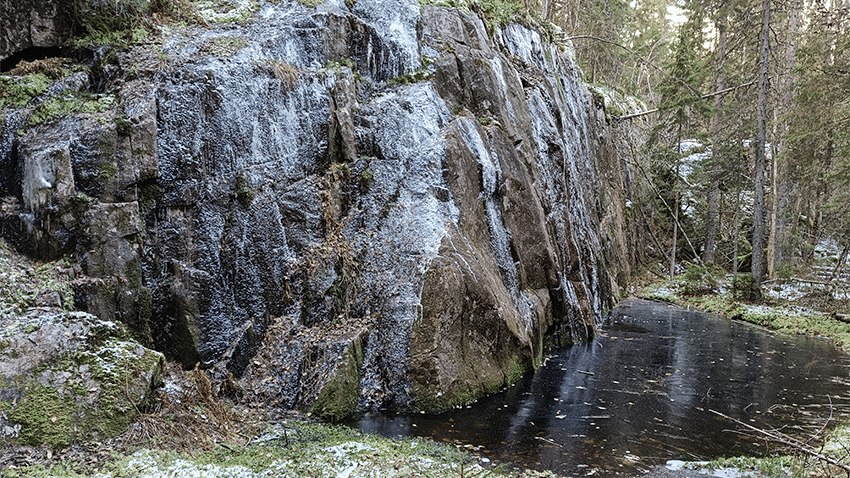 Rinnettä kuvatessani huomaan ensi kertaa kalliossa kasvot. Hätkähdän, onko täälläkin palvottu Ukkoa? Tosin myönnän, että mielikuvitukseni on luova.